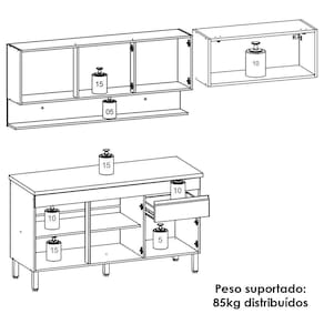 Cozinha Modulada 3 Peças, estilo moderno em módulos que se adaptam ao seu espaço! Produzido em MDP (15mm) com acabamento em pintura UV texturizada. Composta por 07 portas totais (portas superiores com sistema passante), gaveta com corrediças telescópicas, nicho decorativo, uma prateleira interna e puxadores em perfil alumínio (no balcão). Os pés reguláveis são em plástico resistente. Este produto será entregue em 05 volumes.