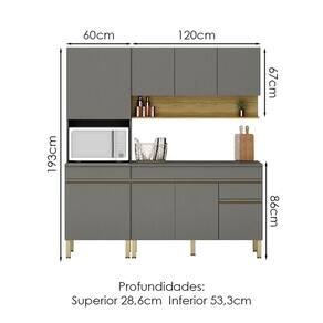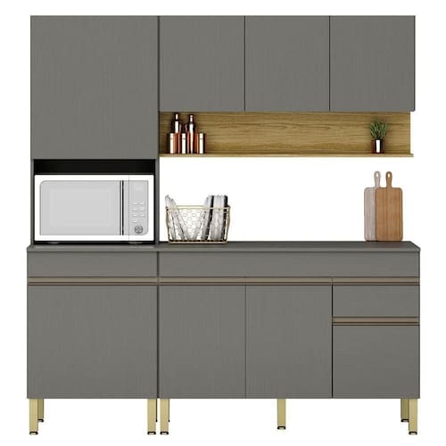 Cozinha Modulada 3 Peças, estilo moderno em módulos que se adaptam ao seu espaço! Produzido em MDP (15mm) com acabamento em pintura UV texturizada. Composta por 08 portas totais (portas superiores com sistema passante), gaveta com corrediças telescópicas, nicho decorativo e nicho para microondas/forno, prateleiras internas, passa fio embutido e puxadores em perfil alumínio (portas inferiores). Os pés reguláveis são em plástico resistente. Este produto será entregue em 05 volumes.
