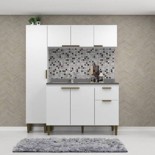 Caracteristicas: 1 Gaveta com corredica metalica 7 Portas com dobradicas metalicas 5 Prateleiras internas Altura dos pes 17cm Espessura Chapa 15mm Estrutura em MDP Perfect Nao acompanha pia Pes em polipropileno Puxador perfil Sistema de montagem parafusos philips