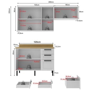Conjunto de cozinha 04 peças, composto por dois armários aéreos (120cm e 80cm) e um balcão para pia com tampo. Balcão e Armários Aéreos compostos por estrutura 100% MDF 15mm com acabamento em pintura BP (brilho) e Tampo de 30mm com acabamento em pintura BP (semibrilho). Conta com 5 portas equipadas com dobradiças de 35 mm com amortecimento slow motion, Aéreo de 80cm com porta basculante e duplo pistão a gás, com detalhes em usinagem de baixo relevo no estilo provençal. Balcão com 3 gavetas com corrediças telescópicas (sendo uma com divisor de talheres), puxadores em alumínio e pés reguláveis em PVC com altura de 17 cm e detalhe cromado. Excelente para quem busca um móveis funcionais e ótimo desempenho. Este móvel chegará na sua casa separado em 06 volumes.
