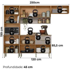 Cozinha Modulada Alba unindo praticidade e beleza para seu dia a dia. Acompanha 4 peças produzidas em MDP (12 e 15 mm) com acabamento em pintura UV. Composta por portas com dobradiças metálicas (sendo 1 basculante com pistão a gás e 7 de bater com uma delas sendo em vidro), 2 gavetas laterais equipadas com corrediças metálicas, puxadores em ABS, nicho decorativo funcional, pés com regulagem de altura, tampo em MDP 15mm e espaço para micro-ondas ou forno (até A.43,4 cm x L.57,6 cm x P.45 cm). Este produto será entregue em 04 volumes.