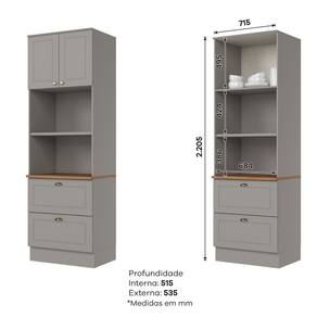 Composto por 2 portas de bater com dobradiças metálicas, gavetas com corrediças telescópicas, prateleira interna, espaços para forno ou microondas, puxadores em metal, este armário é um modulo avulso da composição Cozinha Modulada Americana e é ideal para compor sua cozinha como desejar.
