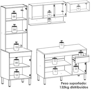 Cozinha Modulada 4 Peças, estilo moderno em módulos que se adaptam ao seu espaço! Produzido em MDP (15mm) com acabamento em pintura UV texturizada. Composta por 09 portas totais (sendo uma delas basculante e superiores com sistema passante), gaveta com corrediças telescópicas, nicho decorativo e nicho para microondas/forno, prateleiras internas, passa fio embutido e puxadores em perfil alumínio (portas inferiores). Os pés reguláveis são em plástico resistente. Este produto será entregue em 06 volumes.