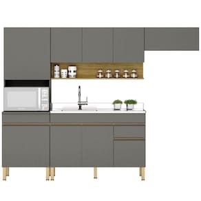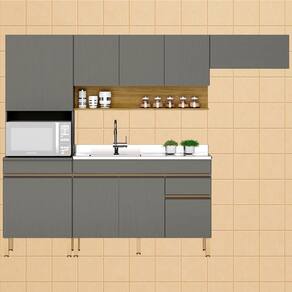 Cozinha Modulada 4 Peças, estilo moderno em módulos que se adaptam ao seu espaço! Produzido em MDP (15mm) com acabamento em pintura UV texturizada. Composta por 09 portas totais (sendo uma delas basculante e superiores com sistema passante), gaveta com corrediças telescópicas, nicho decorativo e nicho para microondas/forno, prateleiras internas, passa fio embutido e puxadores em perfil alumínio (portas inferiores). Os pés reguláveis são em plástico resistente.