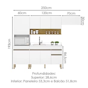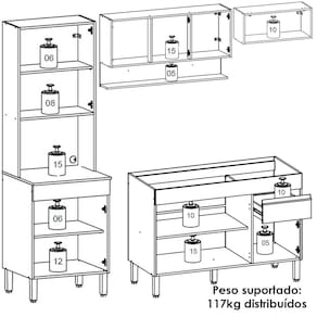 Cozinha Modulada 4 Peças, estilo moderno em módulos que se adaptam ao seu espaço! Produzido em MDP (15mm) com acabamento em pintura UV texturizada. Composta por 09 portas totais (sendo uma delas basculante e superiores com sistema passante), gaveta com corrediças telescópicas, nicho decorativo e nicho para microondas/forno, prateleiras internas, passa fio embutido e puxadores em perfil alumínio (portas inferiores). Os pés reguláveis são em plástico resistente. PIA/TAMPO NÃO INCLUSOS. Este produto será entregue em 05 volumes.
