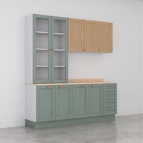 "A Cozinha Arizona é um conjunto de móveis com design clássico, projetada com materiais de alta qualidade e resistência, proporcionando durabilidade e praticidade no uso diário. Além disso, oferece versatilidade e funcionalidade, proporcionando opções de armazenamento adequadas que facilitam as tarefas cotidianas na cozinha. Possui portas com molduras, dobradiças com amortecimento e gavetas com corrediças telescópicas, com essa combinação de atributos a Cozinha Arizona é uma escolha prática e funcional para quem valoriza organização e estilo em sua casa. Para segurança, produto utiliza kit anti tombamento, sendo necessário parafusar à parede." Altura do Conjunto: 135 cm Ambiente: null Ambiente Principal: Cozinha Cor: Figueira/Menta Informação Complementar: 1x Balcão para Pia 120cm Arizona Branco/Menta Largura: 120 cm Altura: 93 cm Peso: 51,3 kg Profundidade: 52 cm Necessita Montagem: Sim