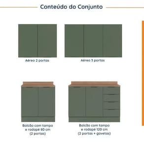A Cozinha Ipanema é um móvel com design moderno, feito com material de qualidade para garantir alta durabilidade e resistência contra umidade. conferem versatilidade e praticidade no dia a dia, permitindo armazenar diferentes objetos. Uma opção de móvel prático e funcional para quem busca organização e estilo em sua casa. Altura do Conjunto: 93 cm Ambiente Principal: Cozinha codigo_ean: 7909903343999 Cor: Verde Folha/Branco Cor do Produto: Verde Folha/Branco Informação Complementar: 1x Armário Aéreo 3 Portas Ipanema Cabecasa MadeiraMadeira Verde Folha/BrancoLargura: 120 cmAltura: 69,5 cmPeso: 31,43 kgProfundidade: 36,7 cmNecessita Montagem: Sim1x Armário Aéreo 2 Portas Ipanema Verde Folha/BrancoLargura: 80 cmAltura: 69,5 cmPeso: 20,96 kgProfundidade: 36,7 cmNecessita Montagem: Sim1x Balcão 2 Portas Com Tampo e Rodapé Ipanema Verde Folha/BrancoLargura: 80 cmAltura: 93 cmPeso: 32,59 kgProfundidade: 52 cmNecessita Montagem: Sim1x Balcão Pia 2 Portas 4 Gavetas com Tampo e Rodapé Ipanema Verde Folha/BrancoLargura: 120 cmAltura: 93 cmPeso: 54,06 kgProfundidade: 52 cmNecessita Montagem: Sim Linha ou Coleção: Ipanema - CabeCasa modular: Sim Possui Rodízio: Não