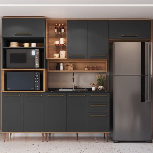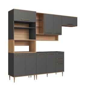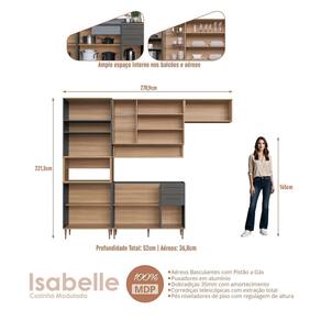 Cozinha modulada Isabelle possui surpreendente espaço interno, design e cores sofisticadas que combinam perfeitamente com qualquer decoração. As gavetas possuem corrediças telescópicas, as portas basculantes contam com dobradiças com amortecimento e pistão à gás para o fechamento suave. Possui prateleiras internas. Torre quente para 2 fornos. Com puxadores em alumínio com ponteira ABS e pés modernos com regulagem de altura. Esses itens de qualidade superior conferem durabilidade e maior vida útil ao móvel. Composta de chapa MDP 1,5cm e 2,5cm. Os módulos são avulsos (cada peça é independente uma da outra) e podem ser arranjados de diferentes formas, o que permite que, nesse caso, você monte uma cozinha do seu jeito.