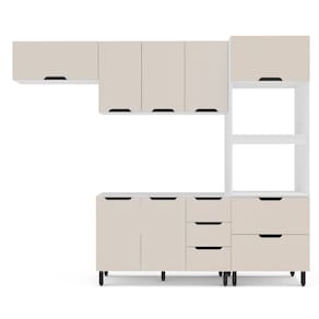 A Cozinha Modulada 4 Pecas sem Tampo Maeena Politorno combina elegancia classica e funcionalidade em um design versatil que valoriza o espaco e o estilo do ambiente. Com estrutura em MDP e acabamento FF/UV, garante resistencia, durabilidade e facil limpeza. O conjunto inclui balcao, paneleiro torre quente e dois armarios aereos, oferecendo amplo espaco para utensilios, eletrodomesticos e mantimentos. Suas gavetas com corredicas telescopicas proporcionam deslizamento suave e seguro, tornando o conjunto uma escolha completa, refinada e eficiente para o dia a dia. Nao acompanha tampo.