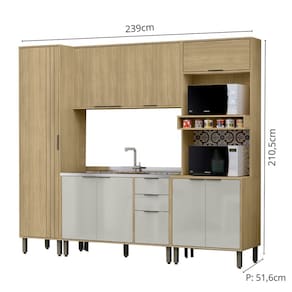 - Cozinha Montada: Altura: 210,5 cm | Comprimento: 239 cm | Profundidade: 51,6 cm