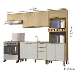 - Cozinha Montada: Altura: 210,5 cm | Comprimento: 270 cm | Profundidade: 51,6 cm