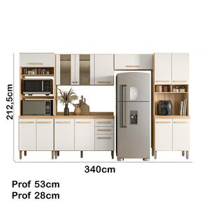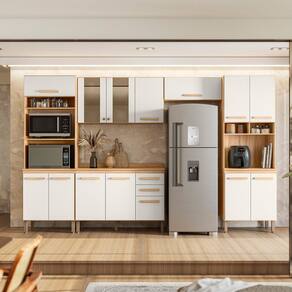 A Cozinha Modulada 17011 Nicioli tem o acabamento refinado e visual sofisticado. Estrutura em MDP, com caixa de 12 mm e frente em 15 mm, e excelente acabamento em Fosco/Brilho. Composto por 14 portas, sendo 02 portas de vidros, com dobradiças metálicas e pistão a gás. Conta também com prateleiras internas e 02 gavetas com corrediças telescópicas, puxadores em MDF. Paneleiros com nichos e espaço para micro-ondas. Balcão 1,20cm com tampo. Acompanha pés de 15,5 cm com regulagem de 1,5 cm de altura. Estes móveis chegarão em sua casa separados em 06 volumes.