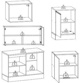 5kg na prateleira superior e 10kg na prateleira inferior e 2kg em cada gaveta