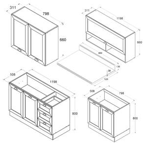 Conjunto de cozinha funcional e elegante, composto por 01 Armário Aéreo de 80 cm, estrutura em MDP de 15 mm, com duas portas em MDF de 15 mm. 01 Armário Aéreo Basculante com design moderno porta de vidro reflecta e sistema de abertura com pistão a gás, facilitando o manuseio e proporcionando um toque sofisticado ao ambiente. 01 Balcão para Pia de 120 cm, com amplo espaço de armazenamento com duas portas e três gavetas, ideal para organizar utensílios e mantimentos. E 01 Balcão de 2 Portas que acompanha tampo em MDP de 25 mm de espessura, oferecendo resistência e estilo. Todos os produtos do conjunto são equipados com dobradiças metálicas nas portas e corrediças telescópicas nas gavetas. Com Puxadores em Zamac e acabamento realizado com pintura UV, garantindo durabilidade e resistência. Este conjunto combina materiais de alta qualidade e design funcional, tornando sua cozinha mais prática e elegante. Este móvel chegará em sua casa separado em 05 volumes.