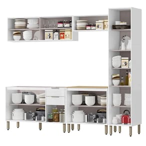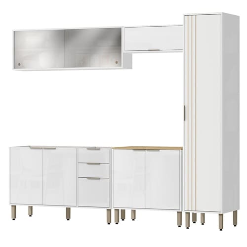 Redefina sua Cozinha com este conjunto completo de 5 peças, projetado para oferecer praticidade, design moderno e durabilidade. Todo o conjunto é produzido 100% em MDP de 15mm, em tintura UV texturizada, para maior resistência, enquanto os puxadores em ABS agregam sofisticação. O conjunto conta com 2 armários aéreos um deles com pistão a gás, e o outro com portas desizantes com acabamento em vidro reflecta. Conta com 1 Balcão de Pia 120cm (NÃO ACOMPANHA PIA/TAMPO), e 1 Balcão de 80 cm ótimo para acoplagem de fogões (NÃO ACOMPANHA RECORTE PARA FOGÃO), perfeita para otimizar espaço, além das corrediças telescópicas, para um deslizar suave. Também está incluso O Paneleiro com Design moderno e exclusivo em baixo relevo de 210 cm, com 5 prateleiras, proporcionando maior organização para utensílios e mantimentos, um conjunto completo com dobradiças metálicas. Todo o conjunto é esquipado com pés reguláveis. Este móvel chegará na sua casa separado em 06 volumes.