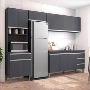 Cozinha Modulada 5 Peças 281 cm Andreia, ideal para quem busca modernidade e sofisticação ao ambiente. Estrutura em MDP de 12 e 15 mm, acabamento com pintura UV. Composto por 12 portas articuladas com dobradiças metálicas, sendo uma basculante com pistão a gás, espaço para microondas ou demais aparelhos de utilidade doméstica, 3 nichos garrafeiros, 4 gavetas com corrediças metálicas com deslize suave, balcão com espaço opcional de 155 cm para colocação de pia (pia não inclusa), possui tampo resistente, prateleiras internas para organizar seus utensílios, puxadores em alumínio, e acompanham pés em PVC com regulagem. Você pode adquirir outras peças dessa composição que são vendidas separadamente no nosso site. Produzido com controle de qualidade e com excelente acabamento. Estes móveis chegarão na sua casa separados em 5 volumes.
