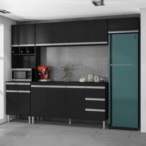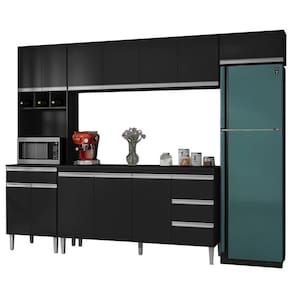 Cozinha Modulada 5 Peças 281 cm Andreia, ideal para quem busca modernidade e sofisticação ao ambiente. Estrutura em MDP de 12 e 15 mm, acabamento com pintura UV. Composto por 12 portas articuladas com dobradiças metálicas, sendo uma basculante com pistão a gás, espaço para microondas ou demais aparelhos de utilidade doméstica, 3 nichos garrafeiros, 4 gavetas com corrediças metálicas com deslize suave, balcão com espaço opcional de 155 cm para colocação de pia (pia não inclusa), possui tampo resistente, prateleiras internas para organizar seus utensílios, puxadores em alumínio, e acompanham pés em PVC com regulagem. Você pode adquirir outras peças dessa composição que são vendidas separadamente no nosso site. Produzido com controle de qualidade e com excelente acabamento. Estes móveis chegarão na sua casa separados em 5 volumes.