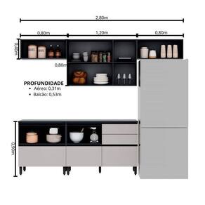 2x Armário de Cozinha para Geladeira 1 Porta Horizontal Basculante 80cm 100% MDF Lúmina Grafite/Cinza Largura: 80 cm Altura: 33,8 cm Peso: 9 kg Profundidade: 31 cm Necessita Montagem: Sim