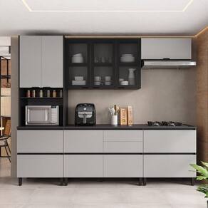 1x Armário de Cozinha 3 Portas 120cm Vidro Transparente 100% MDF Dobradiças Slow Motion Lúmina Grafite Largura: 120 cm Altura: 80 cm Peso: 29 kg Profundidade: 31 cm Necessita Montagem: Sim