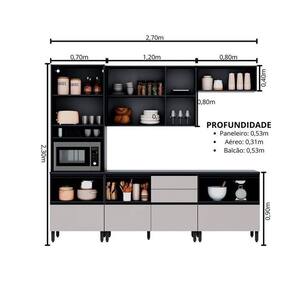 1x Paneleiro 3 Portas 1 Gaveta 70cm Espaço para Forno 100% MDF Dobradiça Slow Motion Lúmina Grafite/Cinza Largura: 70 cm Altura: 230 cm Peso: 64 kg Profundidade: 53,5 cm Necessita Montagem: Sim