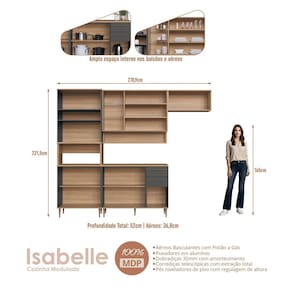 Medida de cada item (A x L x P): IS1630 – Aéreo – 75,5x119,9x36,8cm IS1500 – Balcão – 95x119,8x52cm IS1650 – Nicho – 22,5x119,8x15,5cm IS1611 – Aéreo – 37,7x79,9x36,8cm IS1802 – Torre – 231,5x79,9x52cm