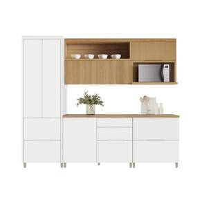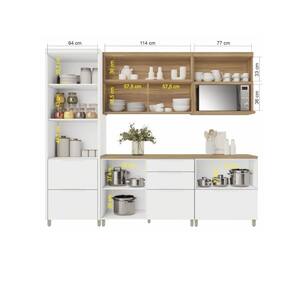 Composicao do Conjunto: Paneleiro 70cm - 2 portas e 2 gavetas, ideal para armazenar utensilios e mantimentos de forma pratica. Armario Aereo 120cm - 1 porta ampla, otimo para guardar loucas e copos. Armario Aereo para Micro-ondas 80cm - nicho funcional com porta, unindo a beleza. Balcao 120cm - 1 porta e 3 gavetas, com excelente aproveitamento interno e tampo incluso. Balcao 80cm - 1 porta e 1 gaveta, versatil e funcional para o dia a dia.