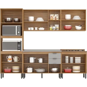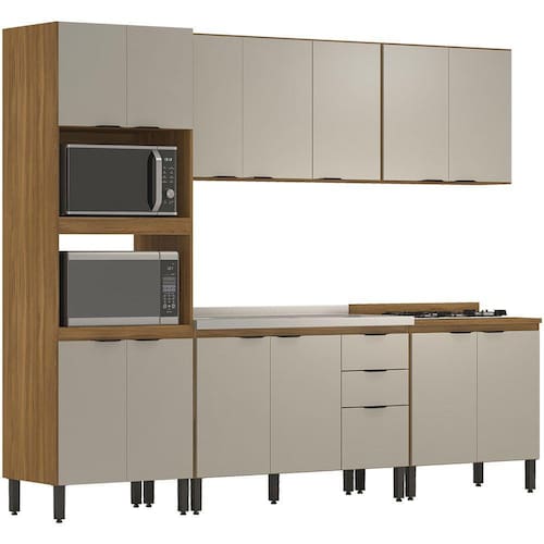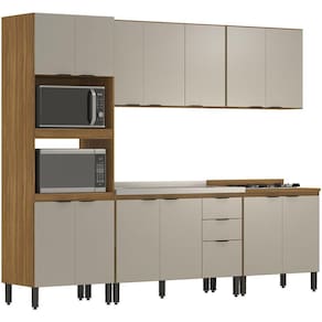 Cozinha Modulada 5 Peças FHR001, com visual clean e moderno, conta com excelente qualidade e acabamento de alto padrão, possui estrutura em MDP de 15 mm e tampo em MDP com 25 mm de espessura, acabamento em pintura UV e nas portas textura de relevo pontilhado Prime TX. Composta por 14 portas com dobradiças metálicas, 2 gavetas com corrediças telescópicas com fechamento suave, espaço duplo forno, para você instalar o micro-ondas e forno elétrico, balcão de 120 cm projetado para suportar pia (pia não inclusa), prateleiras internas com amplo espaço para armazenamento, equipada com puxadores cover em plástico ABS na cor Preto Fosco, e acompanha pés com regulagem de altura na cor Preto. O tampo de 80 cm deverá ser medido e recortado caso queira utilizar com cooktop. Confira em nosso site outros módulos desta linha, você pode compor sua cozinha da forma que desejar e fazer diversas combinações. Estes móveis chegarão em sua casa separados em 6 volumes.