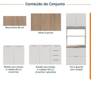 A Cozinha Ipanema é um móvel com design moderno, feito com material de qualidade para garantir alta durabilidade e resistência contra umidade. conferem versatilidade e praticidade no dia a dia, permitindo armazenar diferentes objetos. Uma opção de móvel prático e funcional para quem busca organização e estilo em sua casa. Altura do Conjunto: 207 cm Ambiente Principal: Cozinha codigo_ean: 7909903352458 Cor: Branco/Acácia Cor do Produto: Branco/Acácia Informação Complementar: 1x Armário Aéreo 3 Portas 120cm Puxador 150mm Ipanema Acácia/BrancoLargura: 120 cmAltura: 69,5 cmPeso: 31,44 kgProfundidade: 36,7 cmNecessita Montagem: Sim1x Balcão Pia 2 Portas 4 Gavetas sem Tampo Ipanema BrancoLargura: 120 cmAltura: 69,5 cmPeso: 41,14 kgProfundidade: 51,5 cmNecessita Montagem: Sim1x Balcão 2 Portas Ipanema BrancoLargura: 80 cmAltura: 69,5 cmPeso: 23,5 kgProfundidade: 51,5 cmNecessita Montagem: Sim1x Torre Quente 2 Portas 2 Gavetas 2 Nichos para Forno e Microondas Ipanema BrancoLargura: 80 cmAltura: 207 cmPeso: 75,58 kgProfundidade: 51,5 cmNecessita Montagem: Sim1x Armário Aéreo Porta Basculante Ipanema Acácia/BrancoLargura: 80 cmAltura: 34,7 cmPeso: 11,95 kgProfundidade: 36,7 cmNecessita Montagem: Sim Possui Rodízio: Não