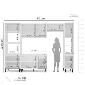 Dimensoes: Altura: 224,5 cm Largura: 310 cm Profundidade: 52 cm Peso: 137,69 kg