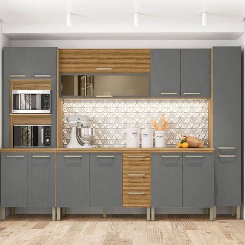 Modelo: Ametista Paneleiro Duplo Forno Produzido com MDP de 15 mm 4 porta Prateleira interna Dobradiças telescópicas metálicas Puxadores ergonômicos em plástico Pés reguláveis em plástico Acabamento em pintura com secagem em luzes UV