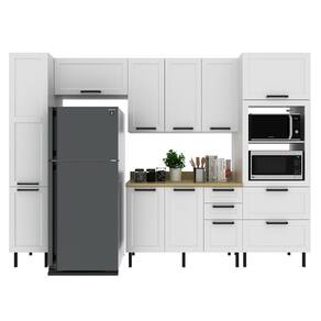 Conjunto de cozinha 06 peças, composto por composto por dois armários aéreo (120cm e 80cm), uma torre quente um paneleiro um balcão para pia com tampo. Balcão, Armários, Torre e Paneleiro composto por estrutura 100% MDF 15mm com acabamento em pintura UV (brilho) e Tampo de 30mm com acabamento em pintura BP (semibrilho). Conta com 7 portas equipadas com dobradiças de 35 mm com amortecimento slow motion e 2 portas basculante e duplo pistão a gás. Balcão com 3 gavetas com corrediças telescópicas (sendo uma com divisor de talheres), puxadores em alumínio e pés reguláveis em PVC com altura de 17 cm e detalhe cromado. Torre com 2 gavetas com corrediças telescópicas e 2 nichos abertos ideais para forno e micro-ondas (Medidas dos nichos: A.39cm x L.57,4cm x P.46,5cm / A.35,8cm x L.57,4cm x P.46,5cm). Paneleiro com 4 prateleiras internas. Toda linha contem portas com detalhes em usinagem de baixo relevo no estilo provençal. Excelente para quem busca um móveis funcionais e ótimo desempenho. Este móvel chegará na sua casa separado em 09 volumes.
