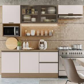 Cozinha Modulada 6 Peças sendo Balcão com Tampo, conta com excelente qualidade e acabamento de alto padrão, projetada para oferecer funcionalidade e elegância para sua cozinha, possui estrutura em MDP 15mm e tampo de 27mm de espessura, pintura UV acetinada. Composta por 6 portas sendo 2 das portas em vidro fume com dobradiças metálicas de 35 mm e função slow motion, proporcionando um fechamento suave e silencioso, e 1 porta basculante equipada com pistão a gás, conta também com 2 gavetas, sendo uma com porta-talheres incluso. Todas são equipadas com corrediças telescópicas, permitindo abertura total e acesso facilitado aos utensílios. Nicho para acomodar micro-ondas ou forno medindo A.39 cm x L.55 cm x P.45 cm, prateleiras internas com amplo espaço para armazenamento, puxadores em polímero com acabamento de alta qualidade conferem um toque moderno ao design dos móveis. Os pés em PVC de 14,5cm são reguláveis, garantindo o nivelamento perfeito dos moveis. Além disso, os rodapés possuem presilhas modelo click na espessura de 15 mm, facilitando sua remoção quando necessário. Este conjunto é ideal para quem busca aliar estética e praticidade, transformando a cozinha em um espaço agradável e eficiente. Este móvel chegará em sua casa separado em 8 volumes.