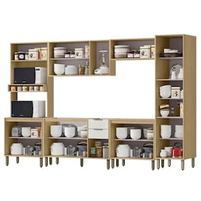 Redefina sua Cozinha com este conjunto modulado completo de 6 peças, projetado para oferecer praticidade, design moderno e durabilidade. Todo o conjunto é produzido 100% em MDP de 15mm, para maior durabilidade, em tintura UV Texturizada, enquanto os puxadores em ABS agregam sofisticação. O conjunto conta com 2 armários aéreos sendo um deles com porta basculante com pistão a gás, e o outro sendo com 3 Portas. Conta com 2 Balcões, sendo 1 Balcão de Pia 120cm (NÃO ACOMPANHA PIA/TAMPO), 1 Balcão de 80cm com Tampo que pode ser para acoplagem de fogões (NÃO ACOMPANHA RECORTE PARA FOGÃO) perfeita para otimizar espaço, além das corrediças telescópicas, para um deslizar suave. Também está incluso a Torre Quente de 3 portas e 1 prateleira interna, e 1 Paneleiro com Porta usinada com Design moderno em baixo relevo, proporcionando maior organização para utensílios e mantimentos, um conjunto completo com dobradiças metálicas. Todo o conjunto é esquipado com pés reguláveis. Este móvel chegará na sua casa separado em 06 volumes.