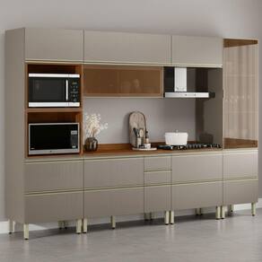 A Cozinha Modulada DP3301 reúne eficiência, durabilidade e excelente aproveitamento do espaço. Composta por 6 peças, produzidas 100% em MDF (20/15 mm) com acabamento em pintura UV. Possui 7 portas basculantes com pistão a gás (sendo 1 em vidro Reflecta 3 mm) e 1 porta de bater também em vidro Reflecta, gavetas laterais (uma com divisor de talheres) e gavetões inferiores, equipadas com corrediças telescópicas. Conta ainda com pés com regulagem de altura, puxadores em alumínio, nicho decorativo funcional, tampo em MDF 20mm e espaços ideais para micro-ondas e forno (de até A.45,4cm x L.64cm x P.51,5cm). NÃO ACOMPANHA COOKTOP/ NÃO ACOMPANHA RECORTE NO TAMPO PARA ENCAIXE. Este produto será entregue em 11 volumes.