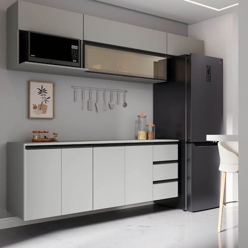 A linha foi pensada para permitir que o cliente a expanda na altura, combinando os módulos basculantes aéreos a cozinha pode chegar até a altura de 2,37 m conferindo um visual imponente para o ambiente.