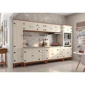 A Cozinha Modulada 6 Peças Off White da La Decora é completamente cheio de charme e elegância. Com estilo rústico que agrega luxo e conforto à decoração, é ideal para compor ambientes de cozinha e copa.