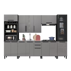 Caracteristicas: Cozinha toda feita chapa 15mm, Revestida fita de borda em melamina, Portas em MDP 15mm Acabamento com camadas de protecao da pintura ultra violeta, Pes com regulagem de altura, Puxadores em aluminio, Dobradica reta metalica com amortecedor. Espaco para forno suporta ate 20kg, Prateleira ate 5kg. Gaveta suporta ate 3kg Corredica telescopicas