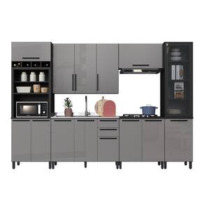Caracteristicas: Cozinha toda feita chapa 15mm, Revestida fita de borda em melamina, Portas em MDP 15mm Acabamento com camadas de protecao da pintura ultra violeta, Pes com regulagem de altura, Puxadores em aluminio, Dobradica reta metalica com amortecedor. Espaco para forno suporta ate 20kg, Prateleira ate 5kg. Gaveta suporta ate 3kg Corredica telescopicas