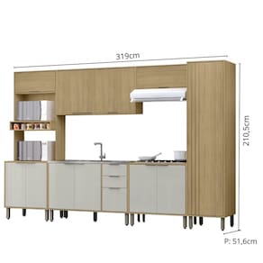 - Cozinha Montada: Altura: 210,5 cm | Comprimento: 319 cm | Profundidade: 51,6 cm