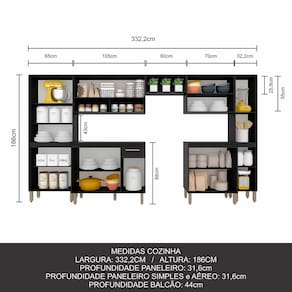 O Armário de Cozinha Modulada 7 peças Tieli se adapta ao seu espaço, sendo flexível e funcional!