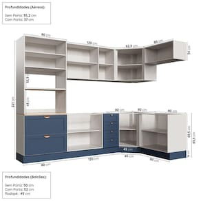 1x Balcão de Canto Oblíquo Sem Tampo Arizona Branco/Azul Largura: 79,7 cm Altura: 83,5 cm Peso: 30,7 kg Profundidade: 79,7 cm Necessita Montagem: Sim