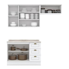 Cozinha Modulada Americana 3 Peças Branco com Tampo Calcare Henn