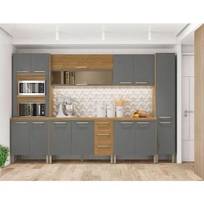 Cozinha Modulada Ametista Composição 2 Freijó Gris Ripado - Kits Paraná