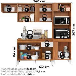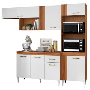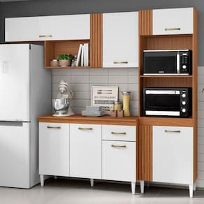 A Cozinha Modulada Vitória combina praticidade e design inteligente para otimizar seu espaço. Composta por 2 peças produzidas em MDP 12 e 15 mm (fundo 3 mm) com acabamento em Verniz Texturizado. Conta com portas equipadas com dobradiças metálicas (sendo uma basculante com amortecedor a gás), gaveta com corrediças metálicas, puxadores plásticos, pés plásticos e tampo em MDP 15 mm. Possui ainda nicho decorativo funcional e espaço ideal para micro-ondas e/ou forno de até (A.44,2 cm X L.58 cm X P.37,8 cm). O sistema de montagem flex permite a instalação do módulo para o lado direito ou esquerdo, conforme a necessidade do ambiente. Destaque para o detalhe ripado em alto relevo (MDP 15 mm). Este produto será entregue em 03 volumes.