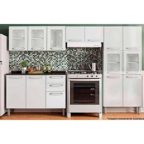 Cozinha Completa Evidence 4 Peças (2 Armários + 1 Balcão + 1 Paneleiro) C4P56 Branco - Bertolini