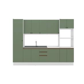 1x Balcão de Pia com 2 Portas e 3 Gavetas 120cm Branco/Verde Oliva;