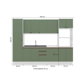 A perfeita união entre estilo e qualidade você encontra no Combo CB1084 da Cozinha Celeste da Kappesberg. Produzida em chapa MDF de 15mm, ela garante robustez, firmeza e qualidade, além de um acabamento perfeito. E com sete camadas de pintura, tanto na parte interna quanto na externa, a caixaria conta com acabamento em brilho na cor branca, enquanto que as frentes, com pintura na cor verde oliva, possui acabamento fosco, uma combinação moderna e única, que fará a diferença no seu espaço, deixando sua cozinha perfeita. Com seis módulos mais tampo, o conjunto possui 2,30m de altura e 3m de largura, combinando estilo e qualidade para todos os ambientes. E com amplo espaço interno e módulo para forno e microondas, você poderá organizar louças e mantimentos, além de preparar receitas especiais e deliciosas para receber sua família ou amigos. E para um melhor acabamento, a cozinha possui rodapés, mas também acompanha as ferragens para ser montada suspensa, do jeito que você preferir. Os diferenciais ficam por conta das dobradiças com amortecimento, garantindo um fechamento suave e sem ruídos, das corrediças telescópicas e os puxadores na cor dourada, complementando o estilo e qualidade do produto. Viva momentos especiais e renove seu espaço com a Cozinha Celeste da Kappesberg.