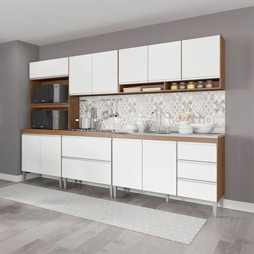 O Arm?rio com Nichos da Cozinha Sabrina foi desenvolvida para atender todas as suas necessidades di?rias com um design moderno, cheio de personalidade, beleza e versatilidade. Por se tratar de arm?rio de cozinha modulado voc? pode ajustar os m?dulos conforme o espa?o dispon?vel e montar diversas modula??es diferentes para deixar o ambiente muito mais aconchegante. A eleg?ncia fica por conta dos puxadores em perfil e os p?s na cor prata dando um toque ?nico de sofistica??o. Produzido com materiais de excelente qualidade, garantindo a durabilidade e vida ?til. O melhor em m?veis no design atual aliando conforto, qualidade e ?timos pre?os, s? na Menu M?veis!