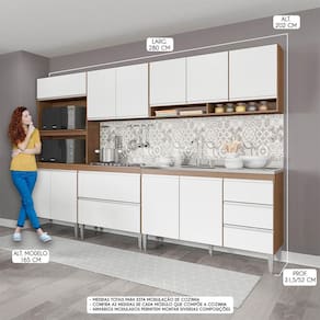 O Balc?o Pia da Cozinha Sabrina foi desenvolvido para atender todas as suas necessidades di?rias com um design moderno, cheio de personalidade, beleza e versatilidade. Por se tratar de arm?rios de cozinha modulados voc? pode ajustar os m?dulos conforme o espa?o dispon?vel e montar diversas modula??es diferentes para deixar o ambiente muito mais aconchegante. A eleg?ncia fica por conta dos puxadores em perfil e os p?s na cor prata dando um toque ?nico de sofistica??o. Produzido com materiais de excelente qualidade, garantindo a durabilidade e vida ?til. O melhor em m?veis no design atual aliando conforto, qualidade e ?timos pre?os, s? na Menu M?veis!