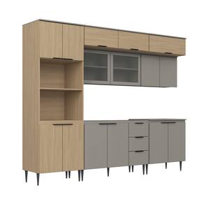 Cozinha Modulada com Vidro 7 Pecas sem Pia Lavinia J Carvalho - Cinamomo | Cinza